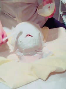 いよいよ、本格的なアキュレッチを行います。アトピーの方でも大丈夫なスクワランオイルを顔全体に塗布した後に、フェイスラインから頭までの表情筋に対して、ソフトにツボを刺激しつつ軽いストレッチを加えることで、筋肉を包んでいる筋膜がほぐれ、筋肉がスムーズに動くようになるので、アキュレッチすると同時にリフトアップしていくのが分かります!