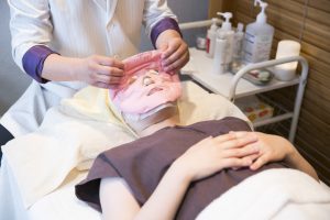 洗顔の後には、当帰や川芎、茴香、丁子などの肌に良い漢方薬のエキスが配合された、日本美容鍼灸マッサージ協会開発の『漢方パック』で、肌に潤いと栄養を補給します。