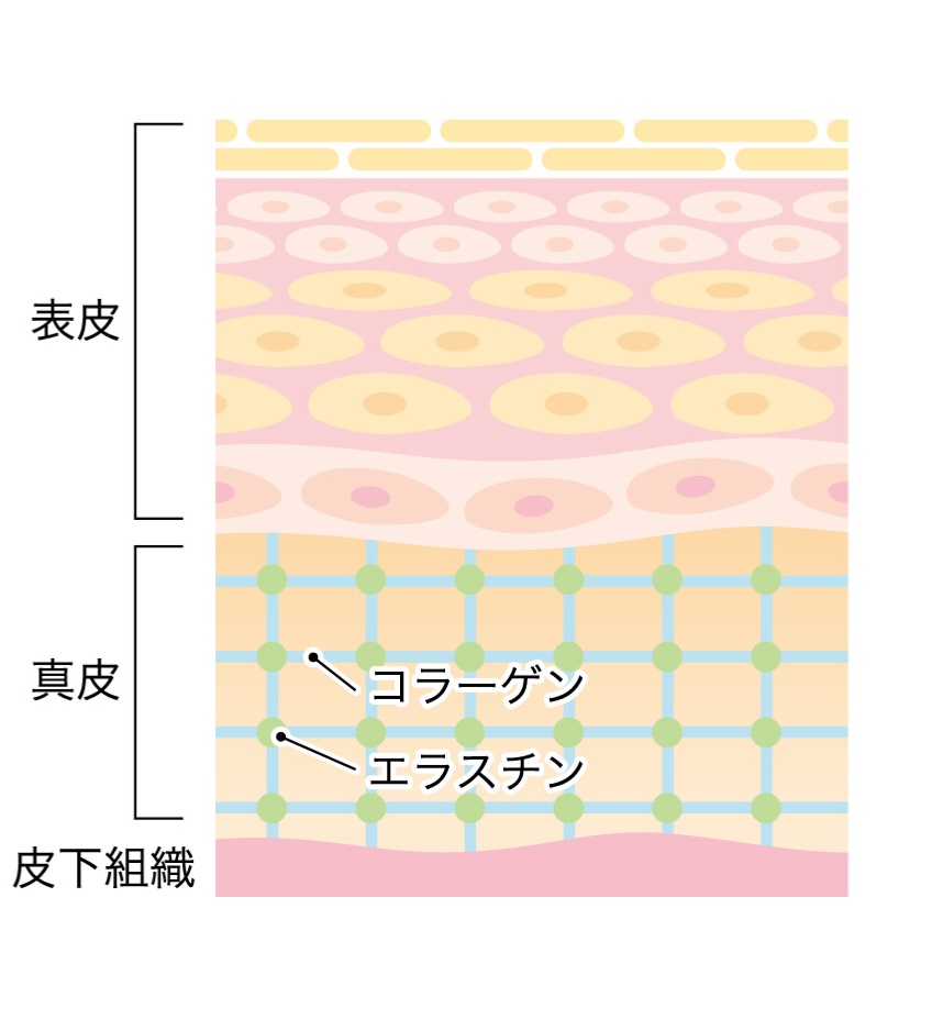 真皮層で分泌されるコラーゲンやエラスチン、