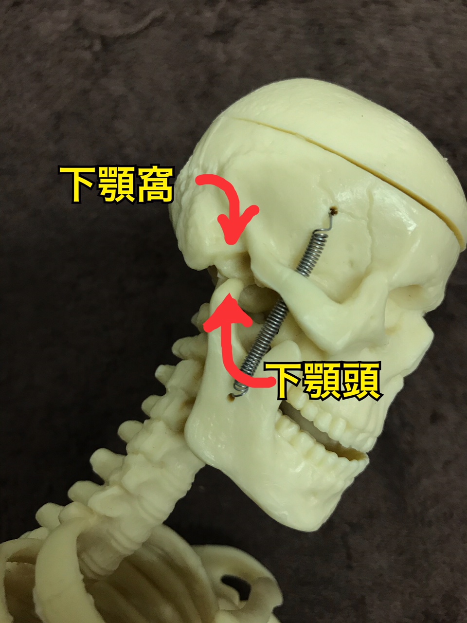 顎関節は下顎骨の下顎頭と、側頭骨の下顎窩という二つから成り立ちます。