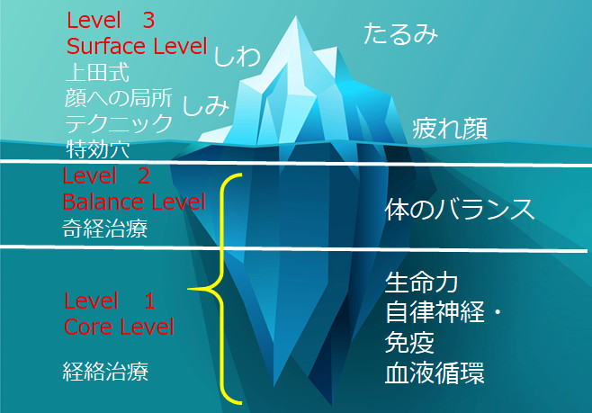 治療法を目的合わせて3段階、スリーレベルで治療し、結果を出していきます。(後ほど詳しく解説)