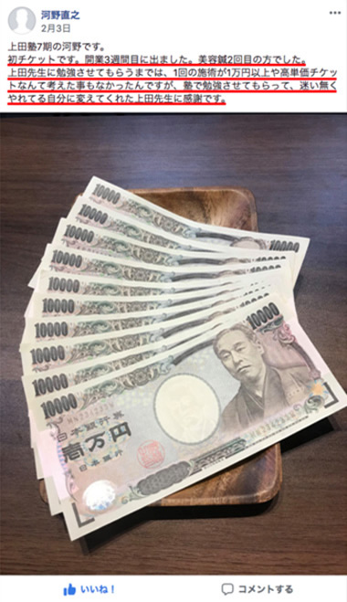 初チケットです。開業3週間目に出ました。勉強させてもらって、迷い無くやれてる自分に変えてくれた上田先生に感謝です。